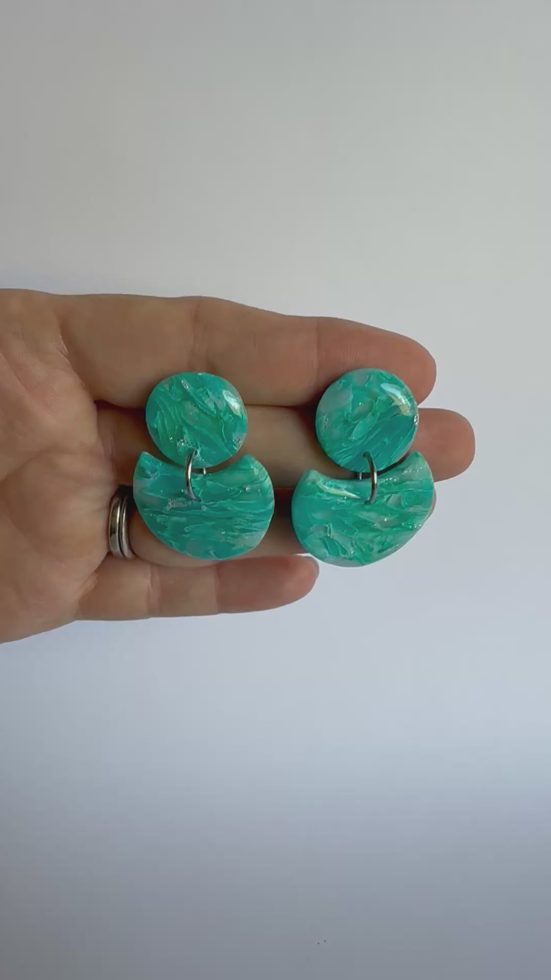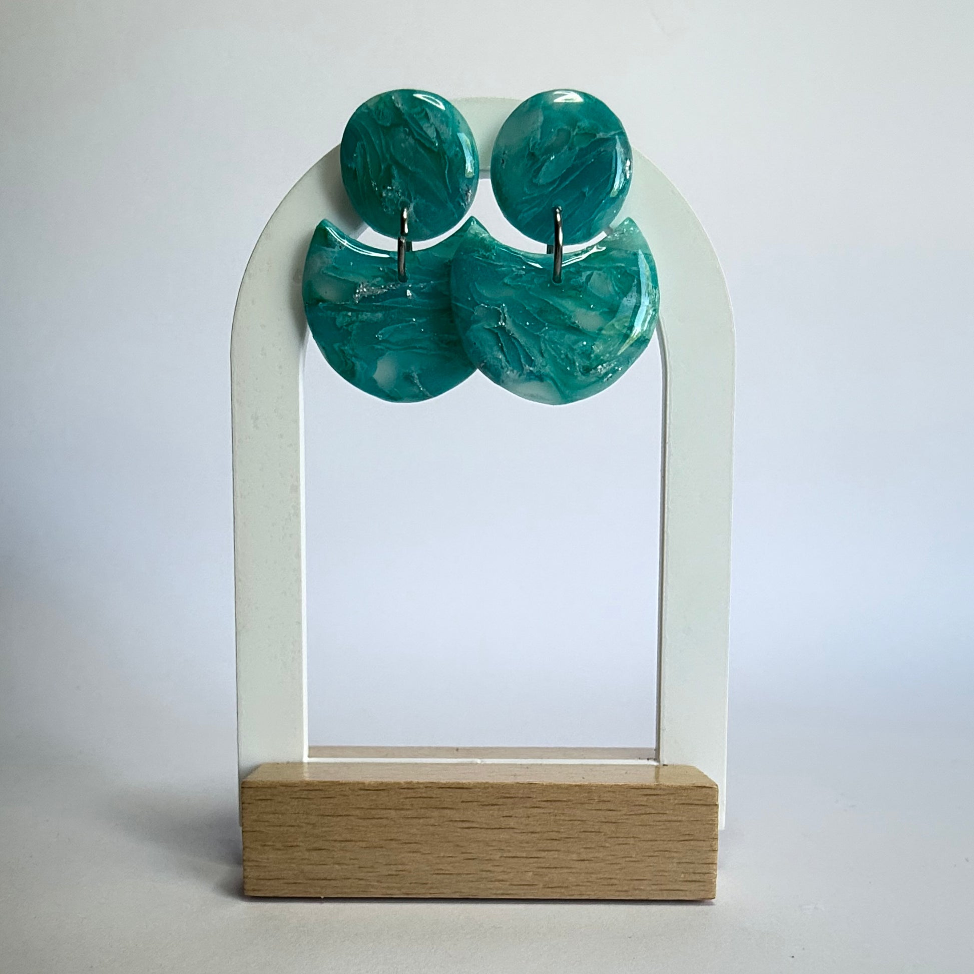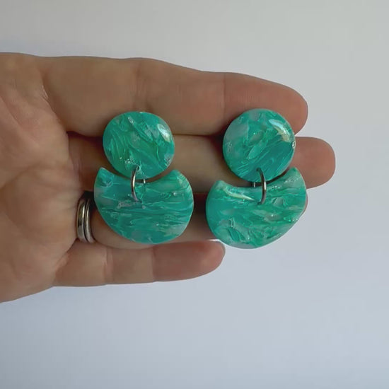 These earrings are medium sized with silver posts and findings. They are made from lightweight polymer clay with a durable resin finish to make the silver streak and vibrant colours POP!