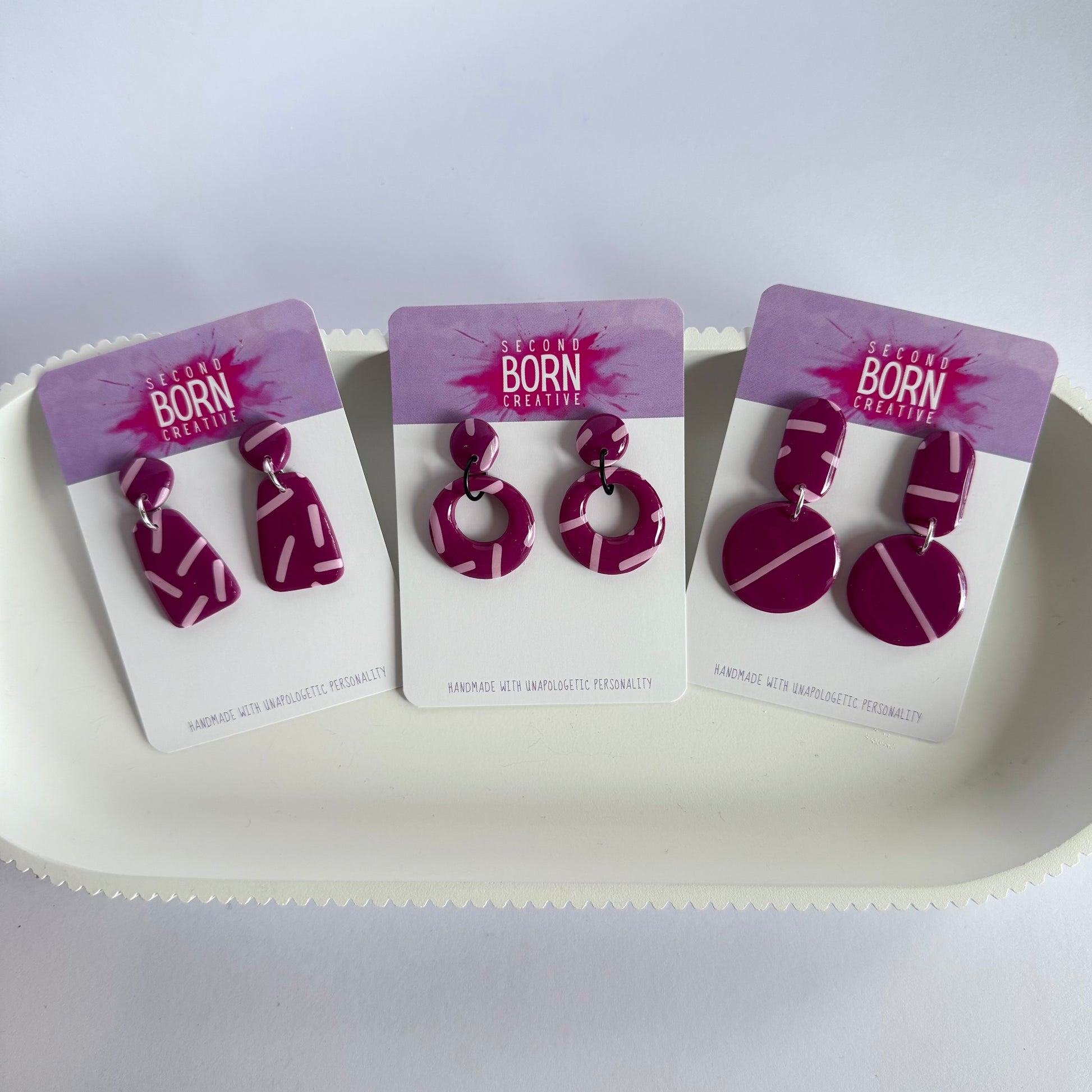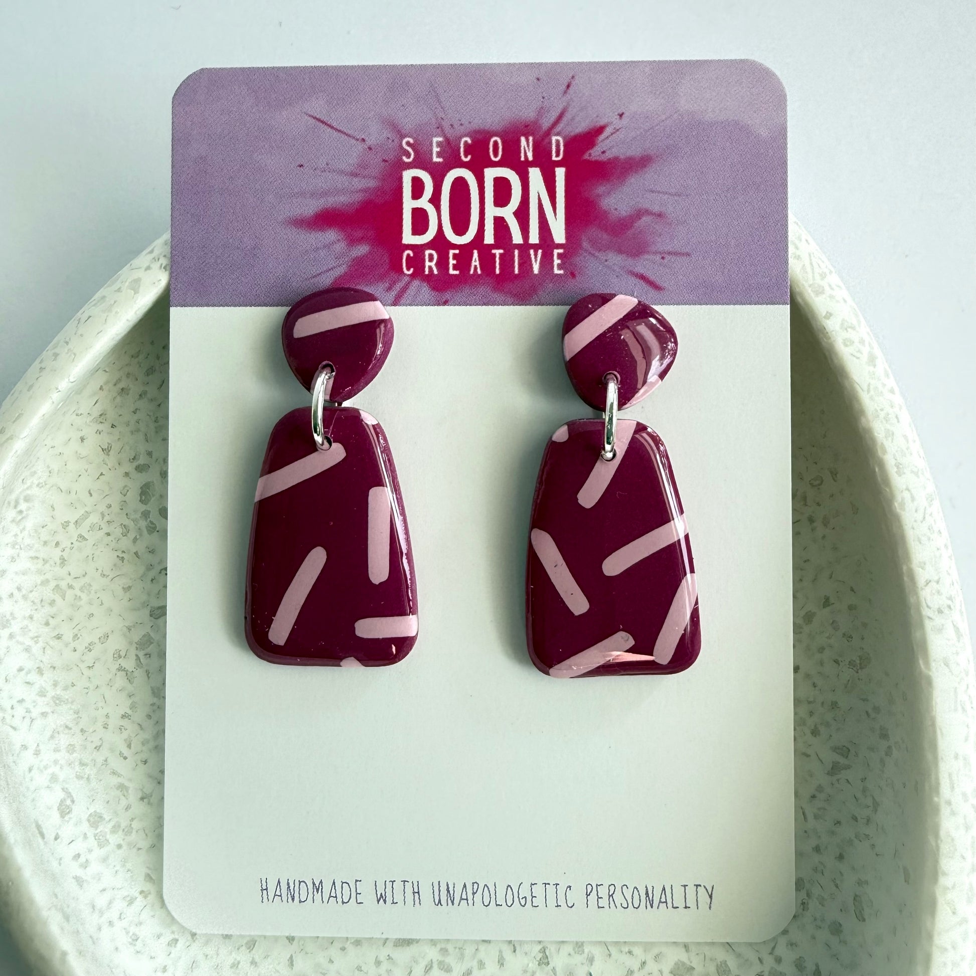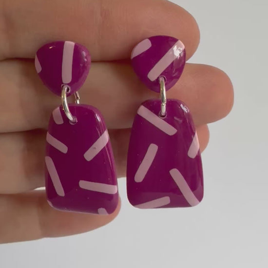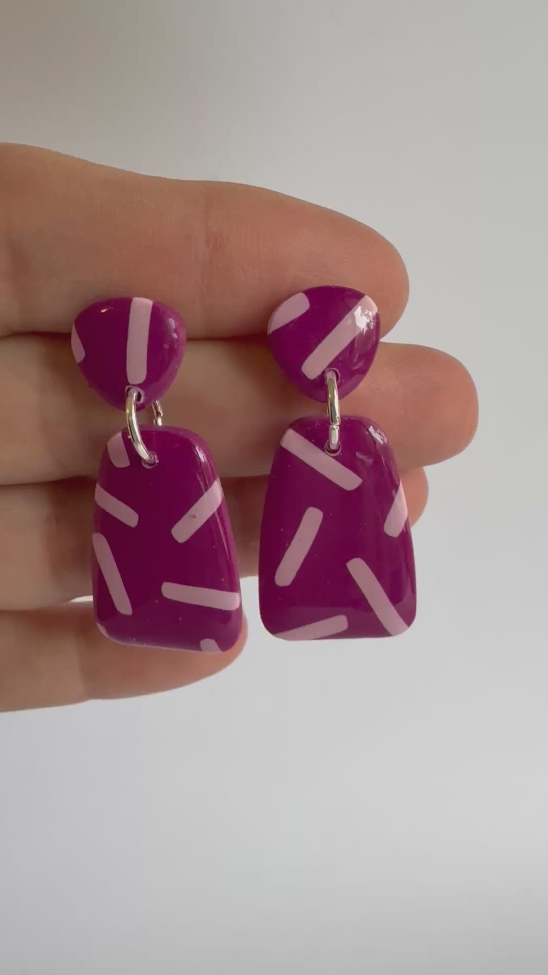 These earrings are medium sized with stainless steel posts and silver findings. They are made from lightweight polymer clay with a durable resin finish to make the vibrant colours POP!