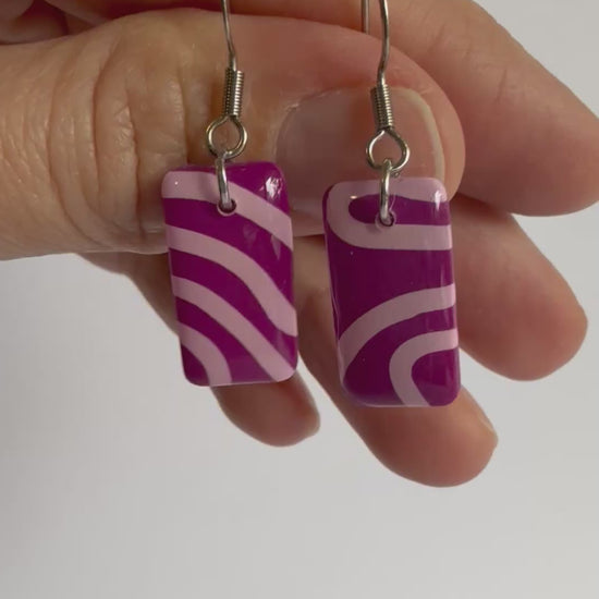 These earrings are petite pairs with stainless steel hooks and silver findings. They are made from lightweight polymer clay with a durable resin coating to add the shine that really makes them POP!