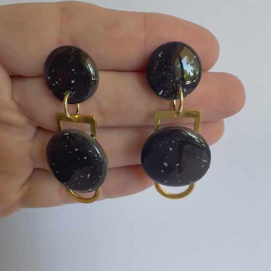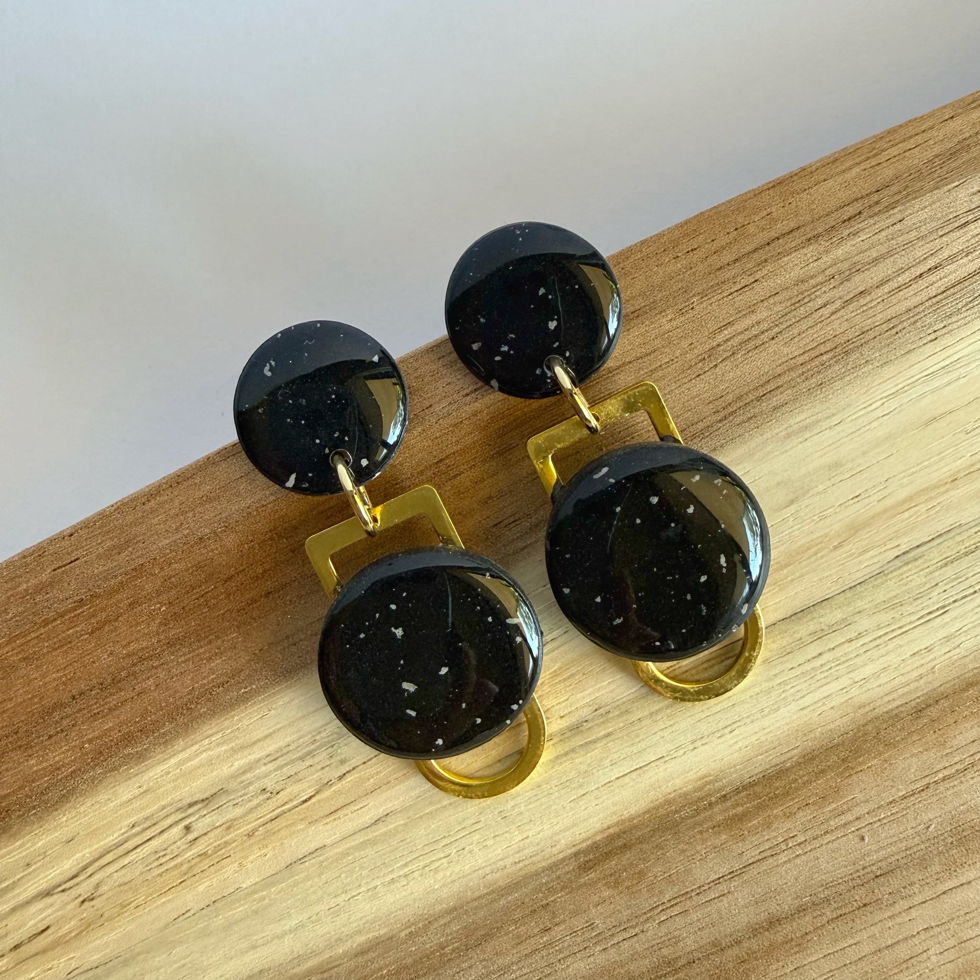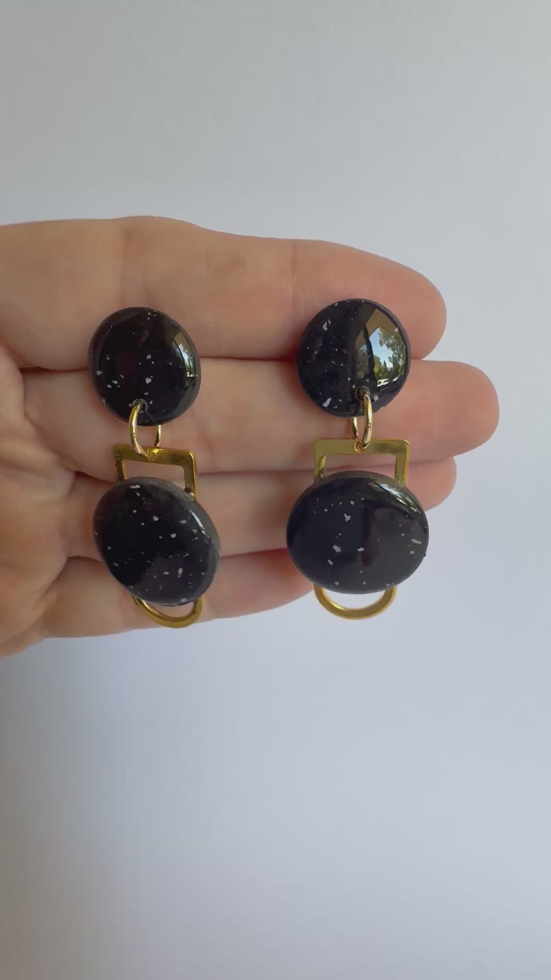 These earrings are medium sized with stainless steel gold posts and gold findings and a gorgeous accent arch. They are made from lightweight polymer clay with a durable resin finish to really make them POP!