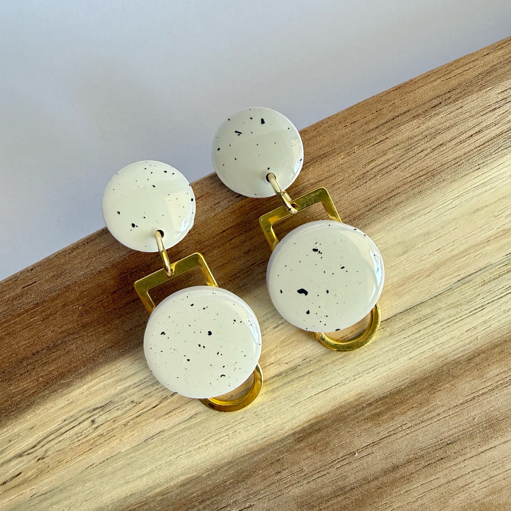 These earrings are medium sized with stainless steel gold posts and gold findings and a gorgeous accent arch. They are made from lightweight polymer clay with a durable resin finish to really make them POP!