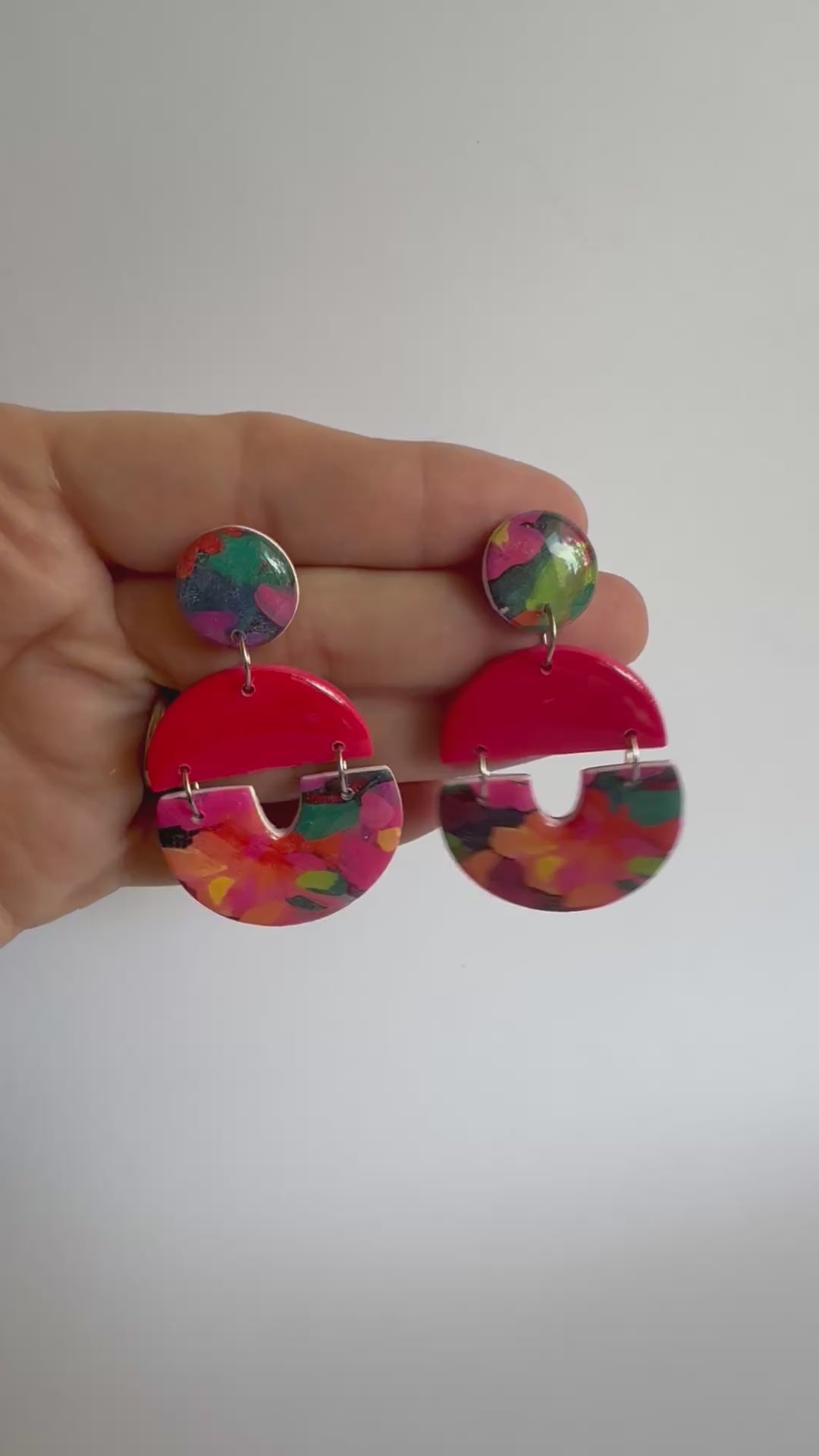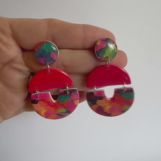These earrings are large sized with stainless steel posts and silver findings. They are made from lightweight polymer clay with a durable resin finish to make the vibrant colours POP!