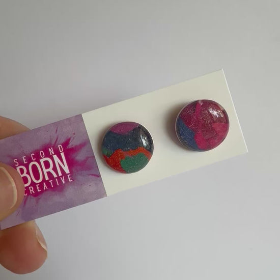 These earrings are made from lightweight polymer clay with a durable resin finish to make the vibrant colours POP! Earring posts are stainless steel.