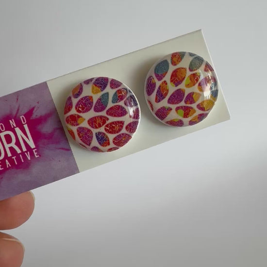 These earrings are made from lightweight polymer clay with a durable resin finish to make the vibrant colours POP! Earring posts are stainless steel.