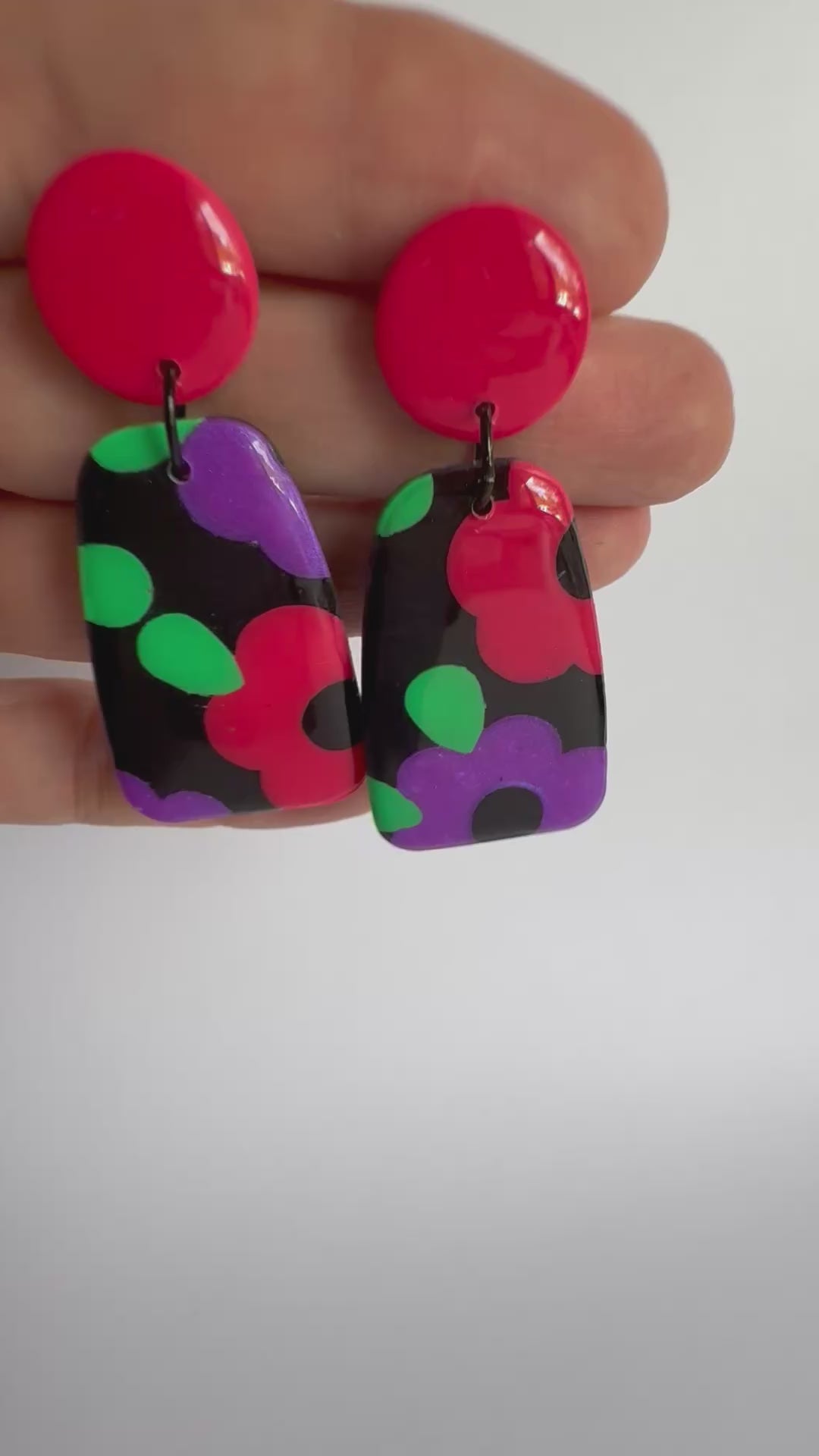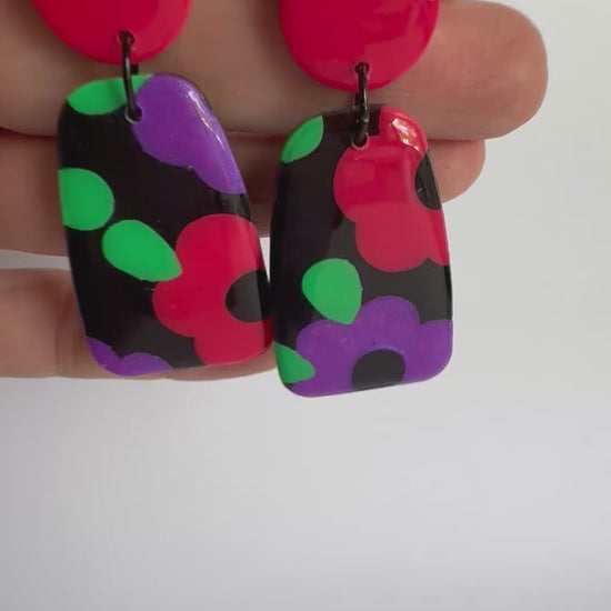 These earrings are large sized with stainless steel silver posts and black findings. They are made from lightweight polymer clay with a durable resin finish to really make the gorgeous colours POP!