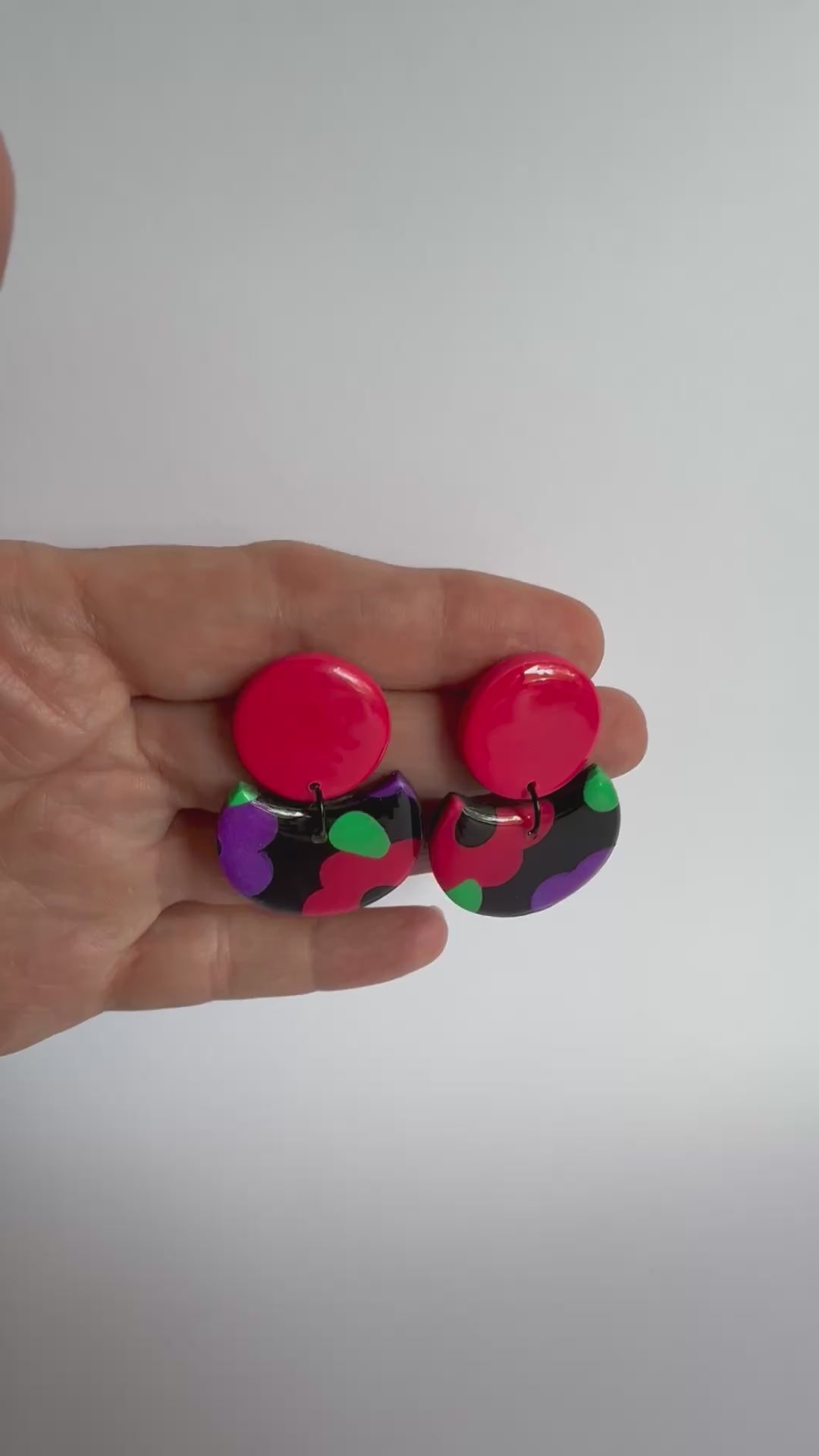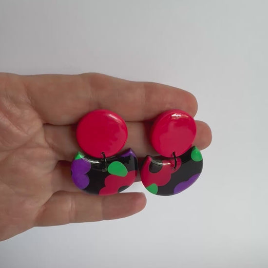 These earrings are medium sized with stainless steel silver posts and black findings. They are made from lightweight polymer clay with a durable resin finish to really make the gorgeous colours POP!