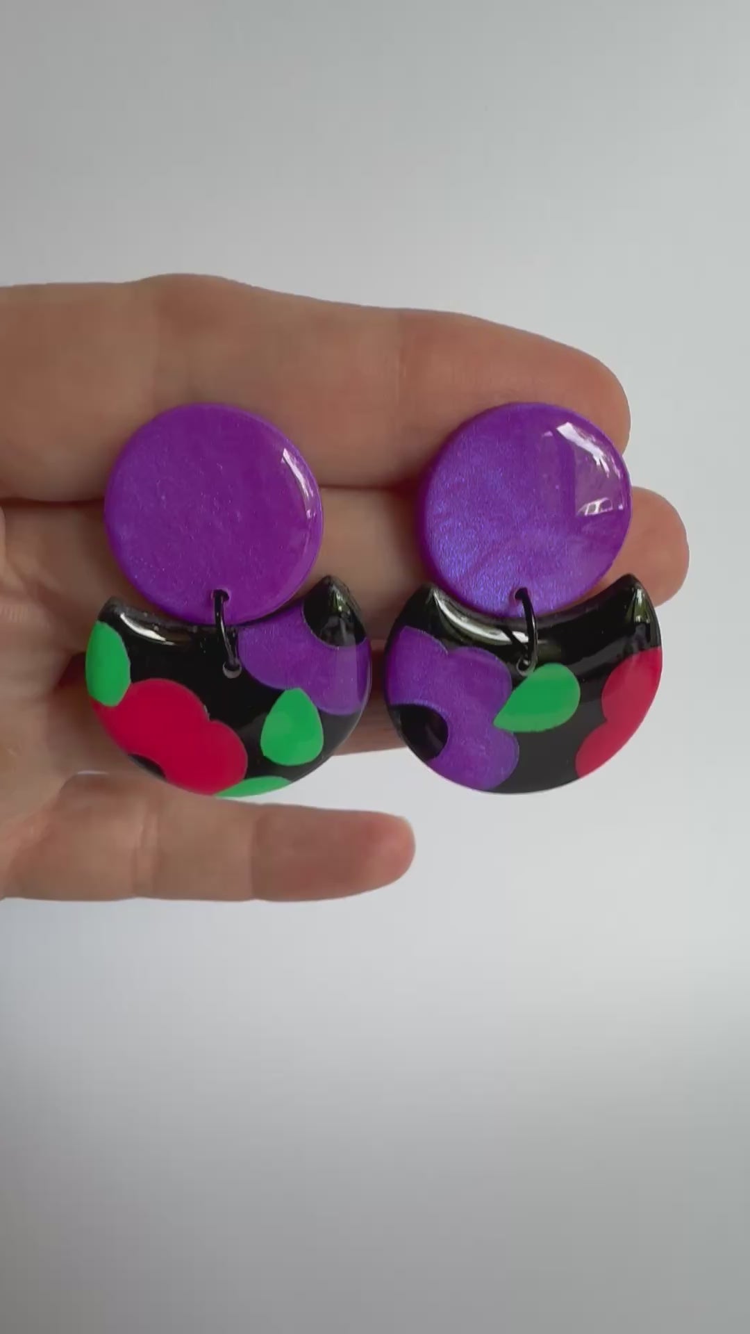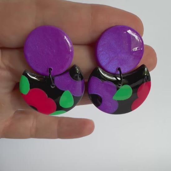 These earrings are medium sized with stainless steel silver posts and black findings. They are made from lightweight polymer clay with a durable resin finish to really make the gorgeous colours POP!