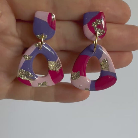 These earrings are medium sized with stainless steel gold posts and gold findings and a gold leaf accent. They are made from lightweight polymer clay with a durable resin finish to really make the colours POP!