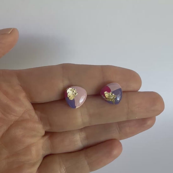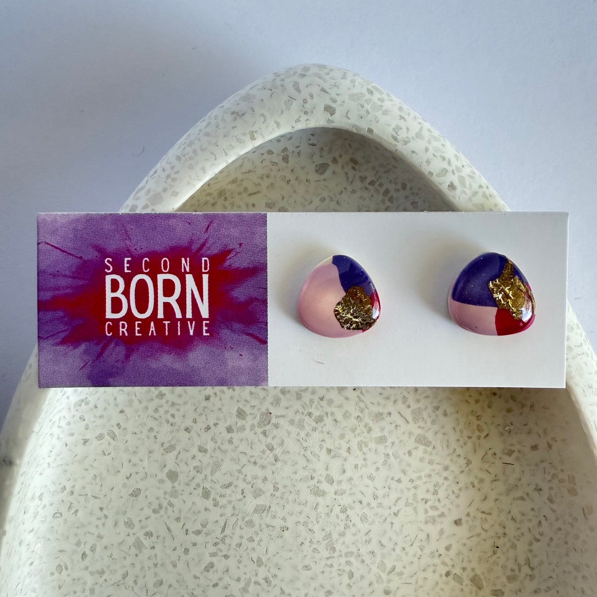 These earrings are made from lightweight polymer clay, gold stainless steel posts and a durable resin finish to make the vibrant colours and gold shimmer POP!