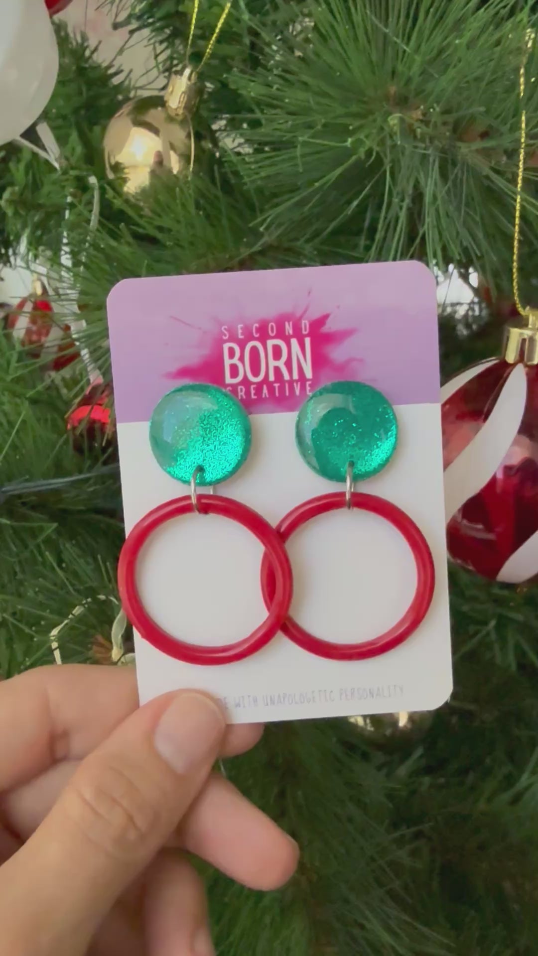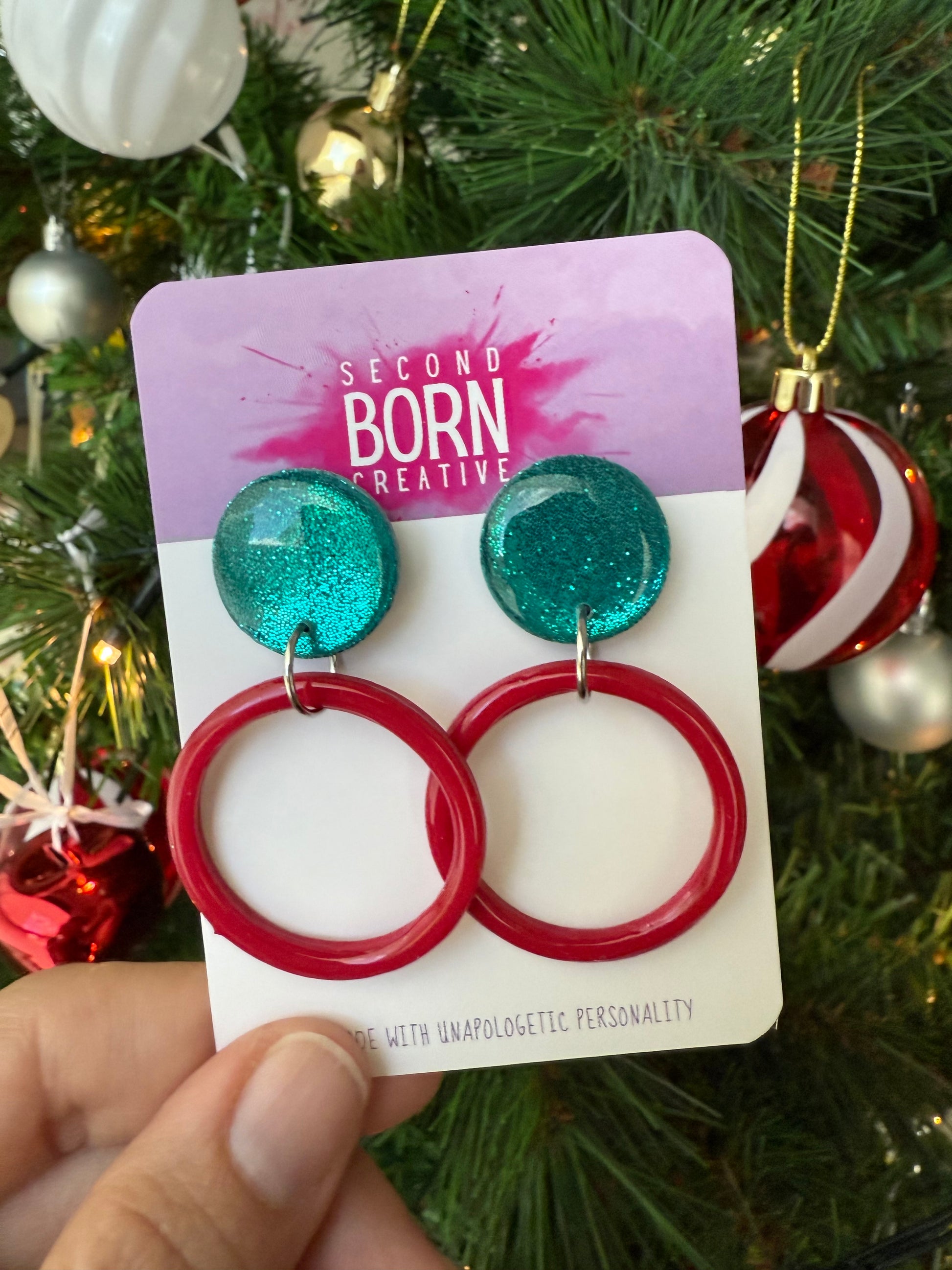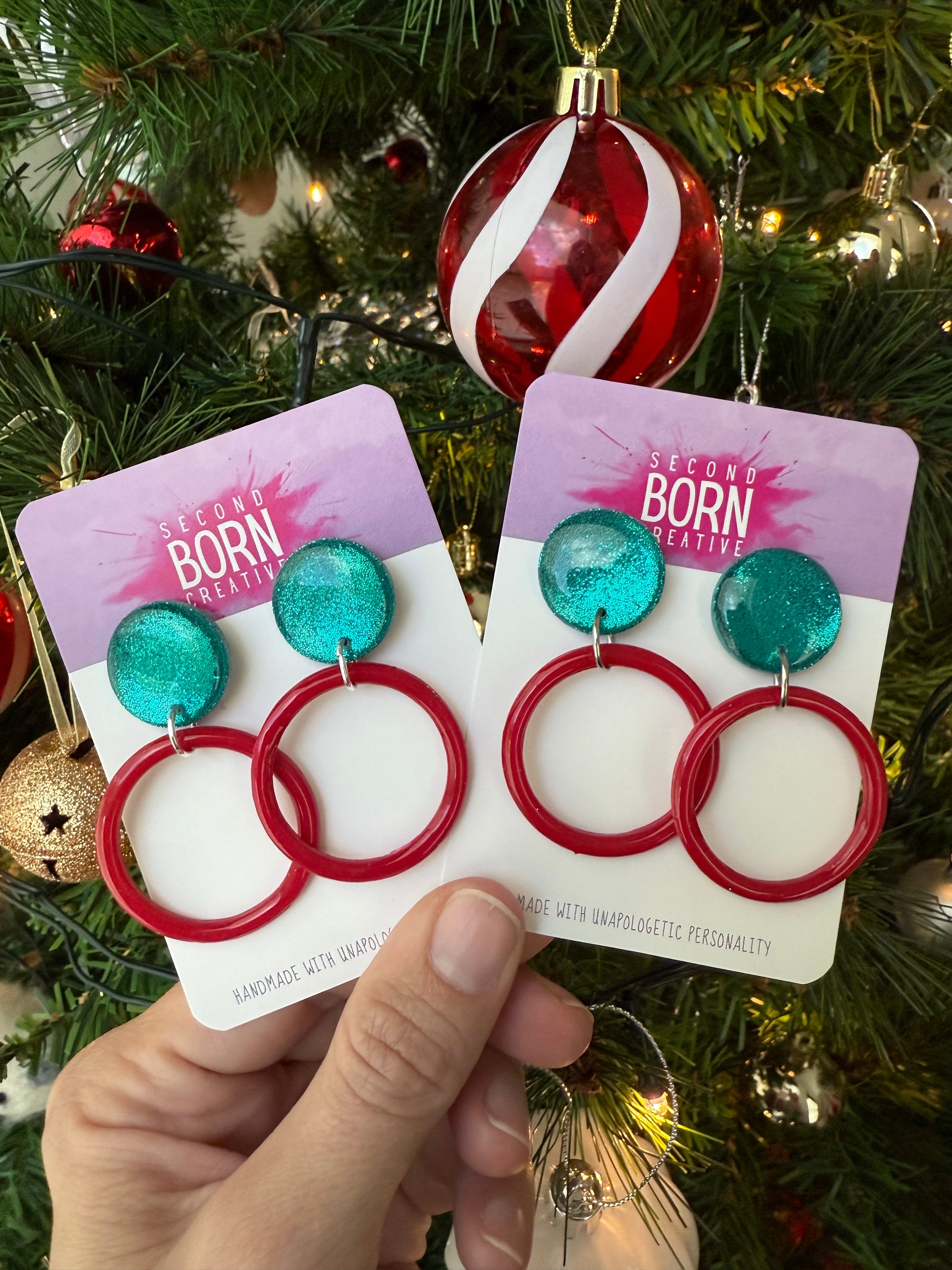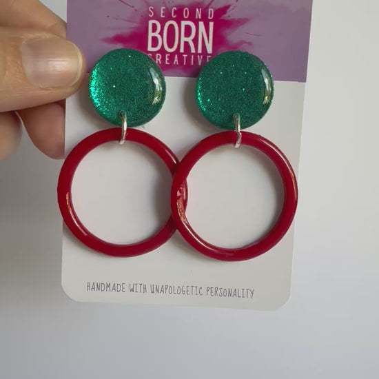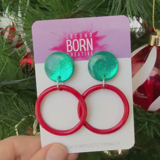 Deck my halls with this gorgeous green glitter and red hoop combo!