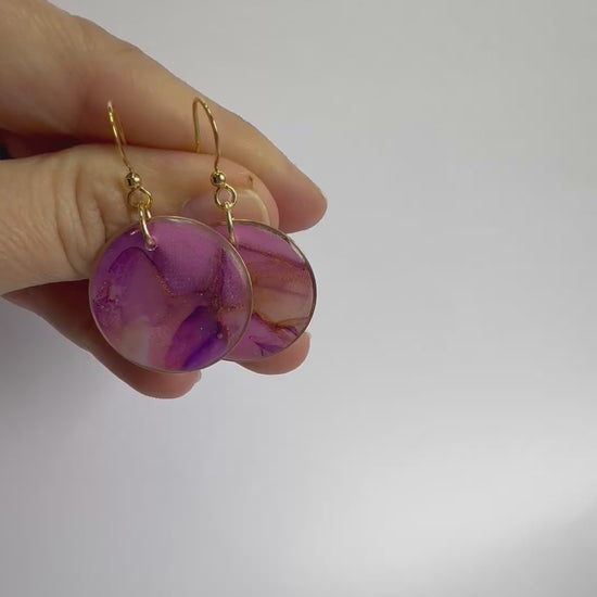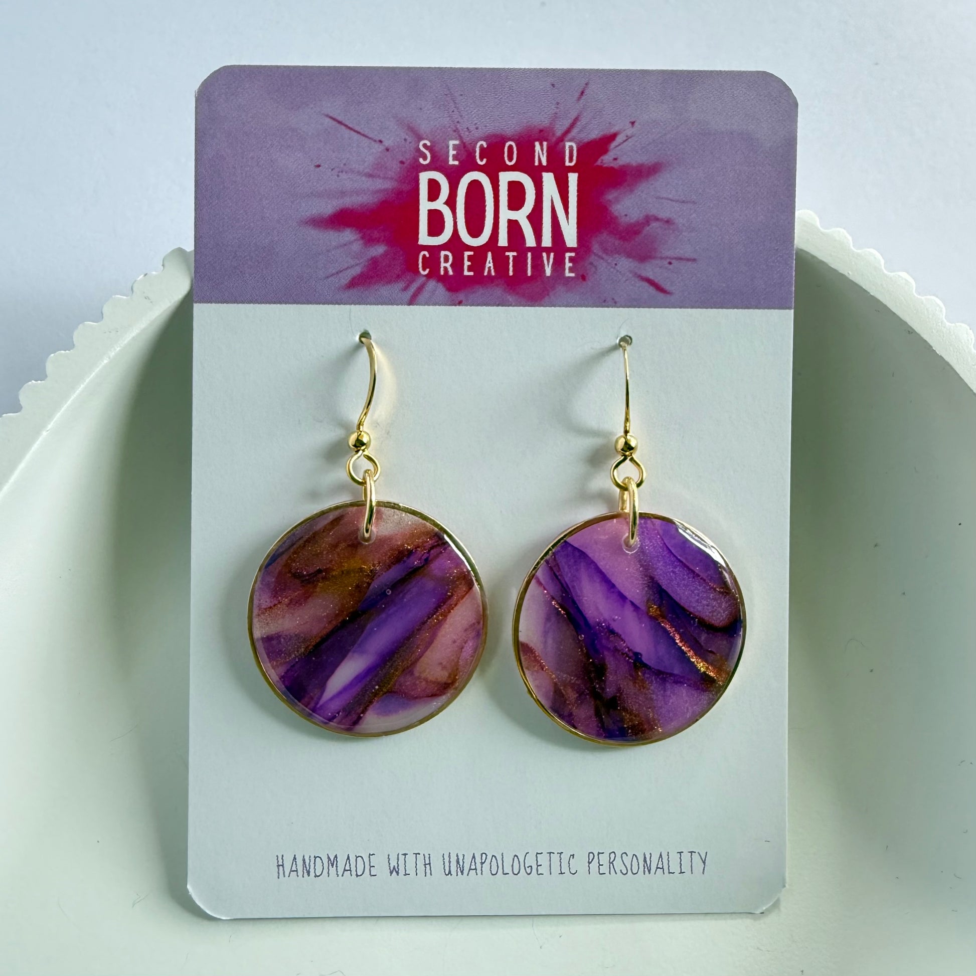 These earrings are large sized with stainless steel hooks and gold findings. They are made from lightweight polymer clay with a durable resin finish to make the vibrant colours and shimmery gold POP! Plus embedded in a gold accent hoop to finish them off!