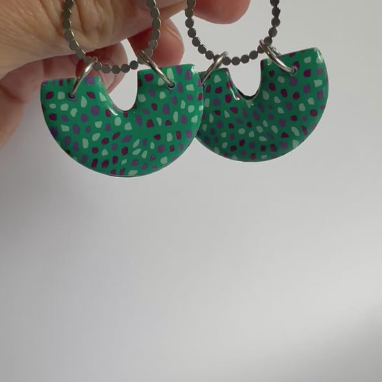 These earrings are medium sized with stainless steel hooks and silver findings. They are made from lightweight polymer clay with a durable resin finish to make the vibrant colours POP!