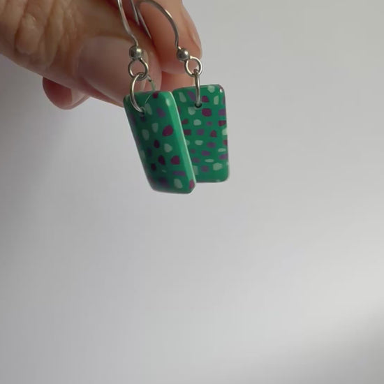 These earrings are petite pairs with stainless steel hooks and silver findings. They are made from lightweight polymer clay with a durable resin finish to make the vibrant colours POP!