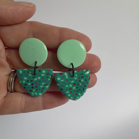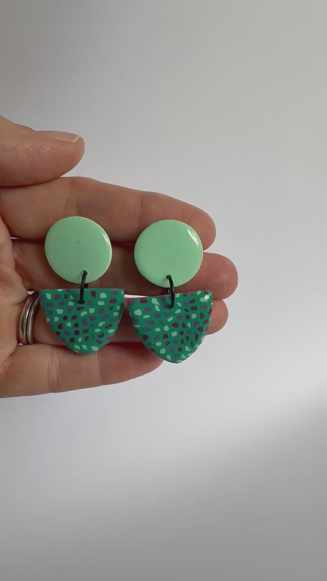These earrings are medium sized with stainless steel posts and black findings. They are made from lightweight polymer clay with a durable resin finish to make the vibrant colours POP!