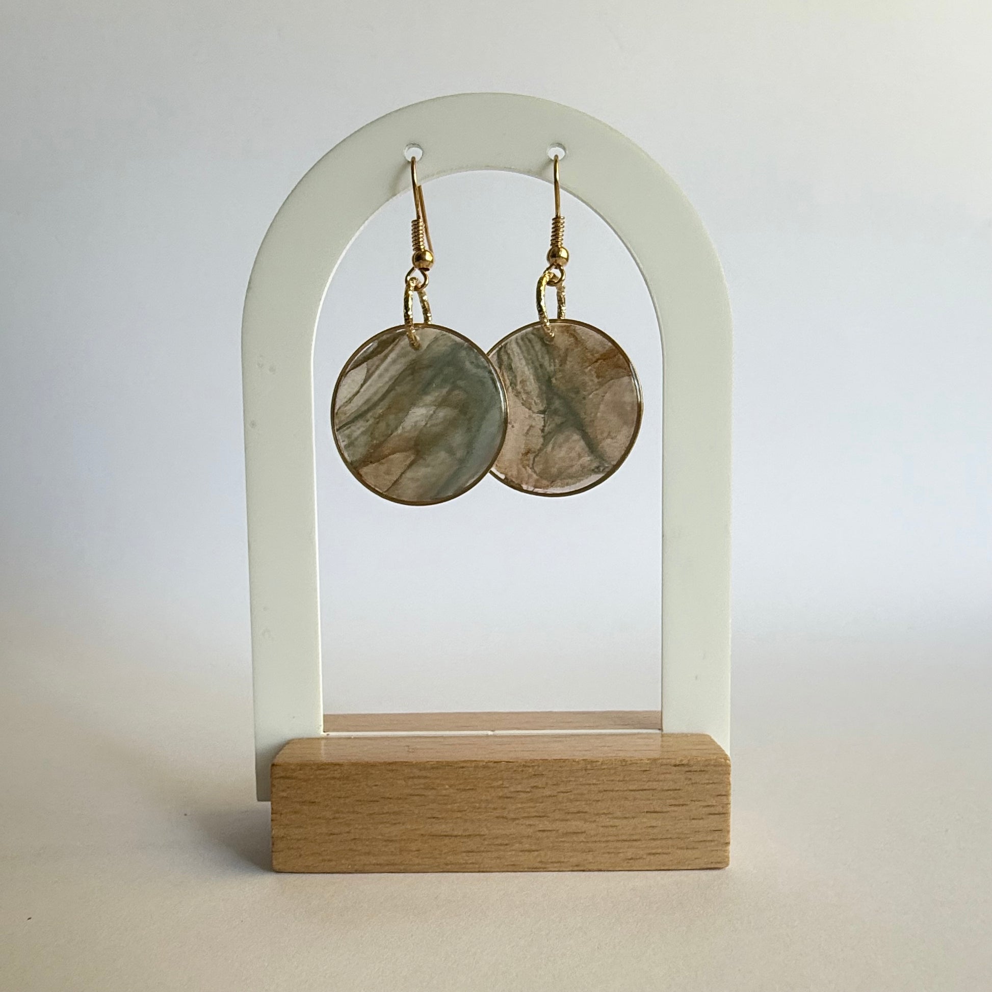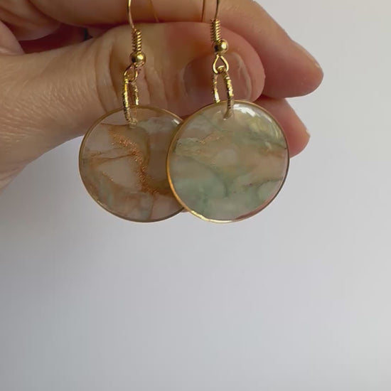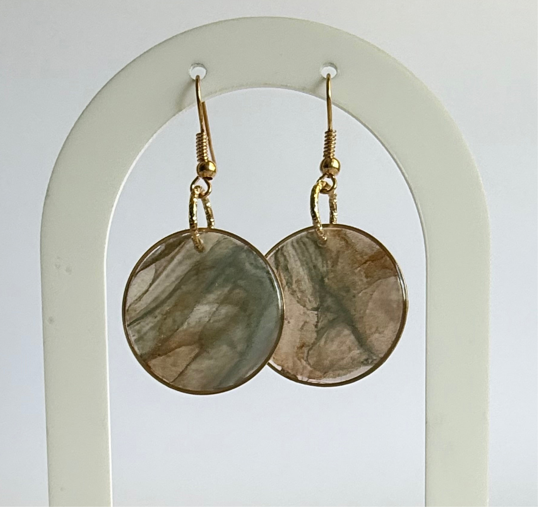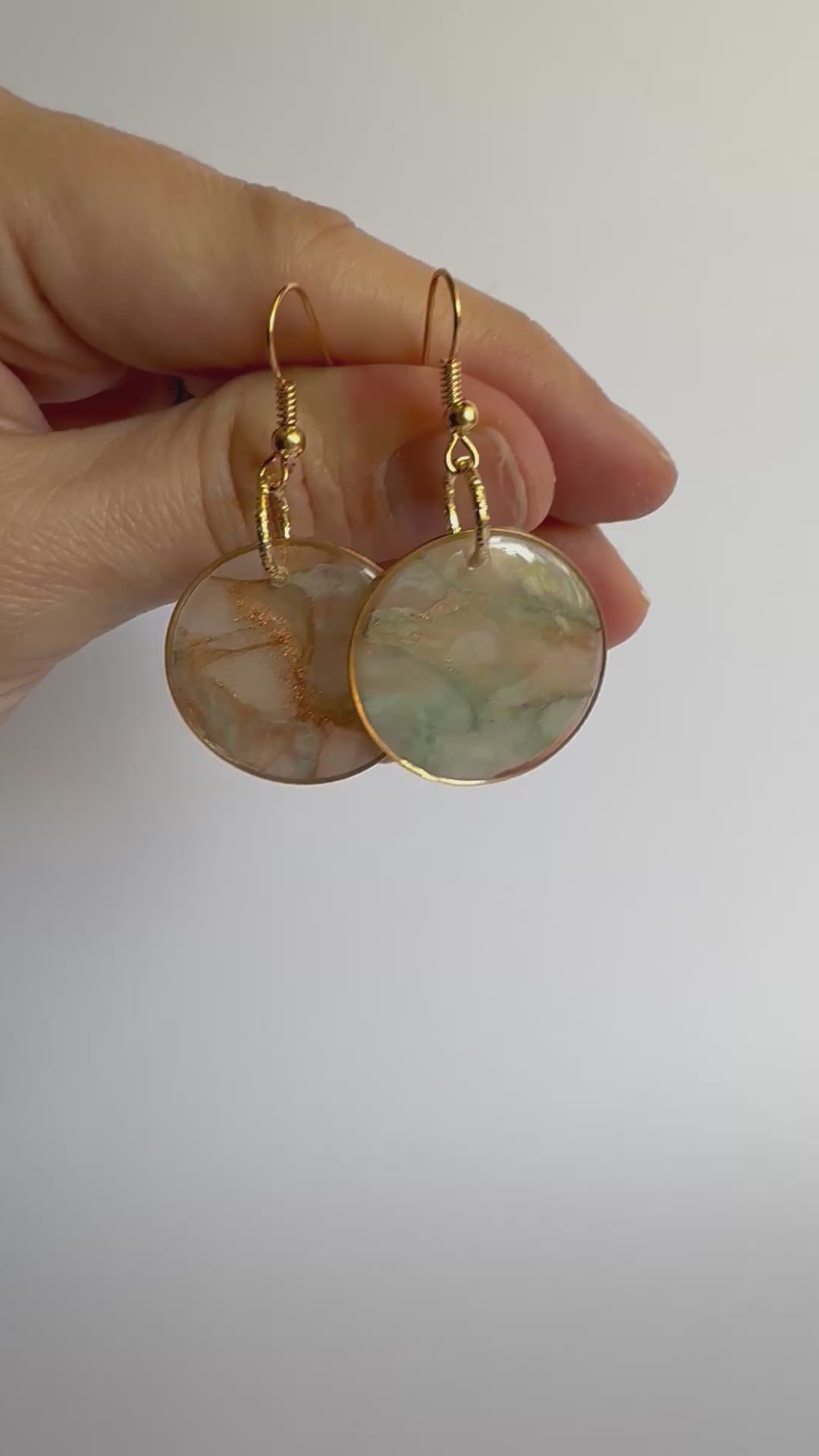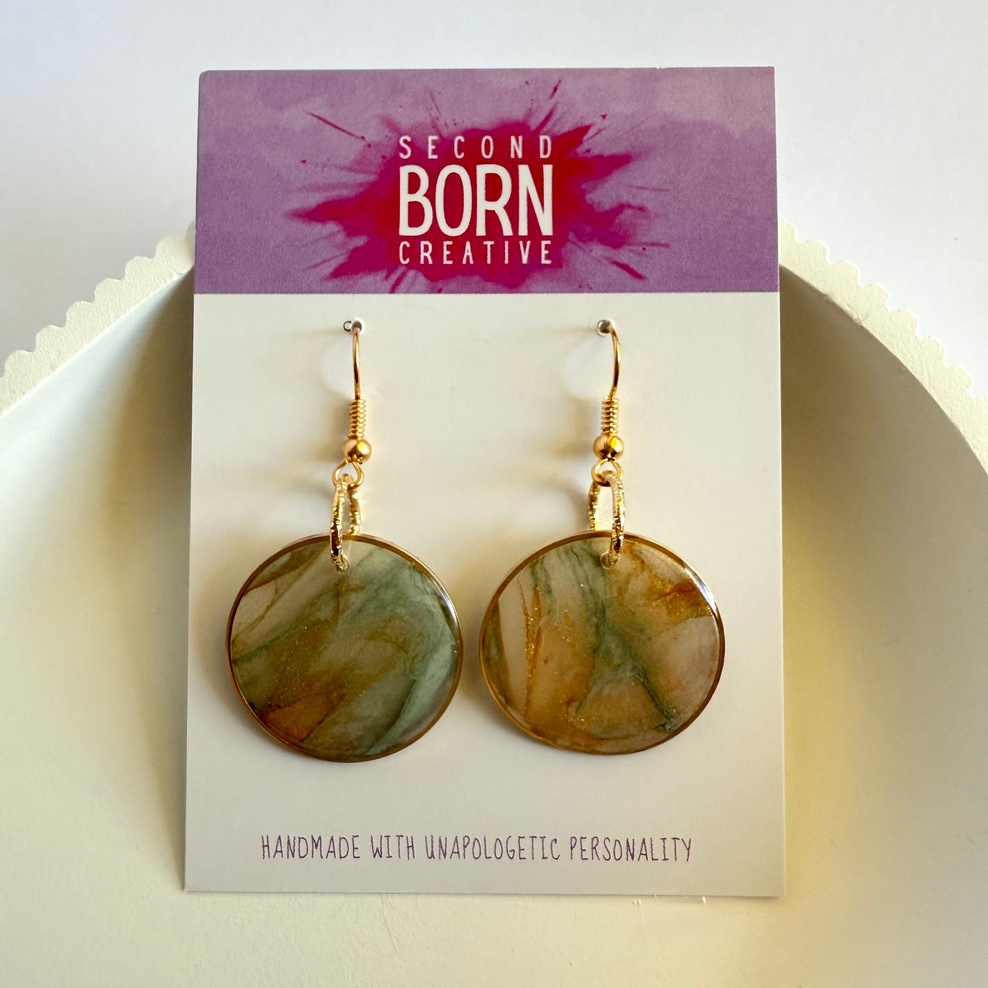These earrings are large sized with gold hooks and findings. They are made from lightweight polymer clay with a durable resin finish to make the vibrant colours and shimmery gold POP! Plus embedded in a gold accent hoop to finish them off!