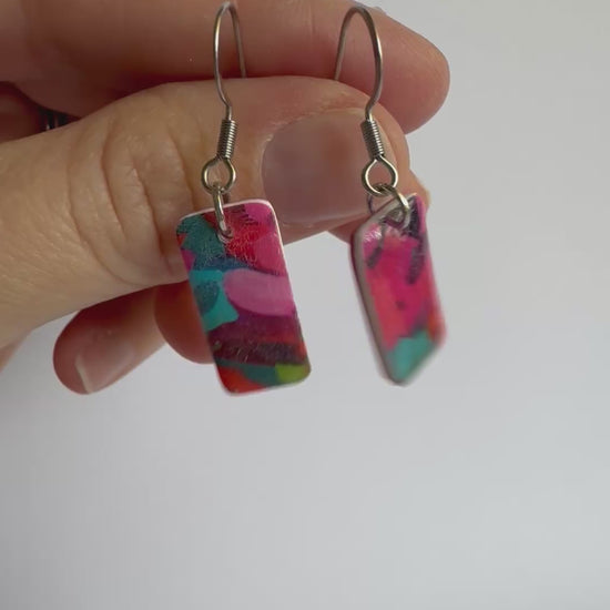 These earrings are petite pairs with stainless steel hooks and silver findings. They are made from lightweight polymer clay with a durable resin coating to add the shine that really makes them POP!